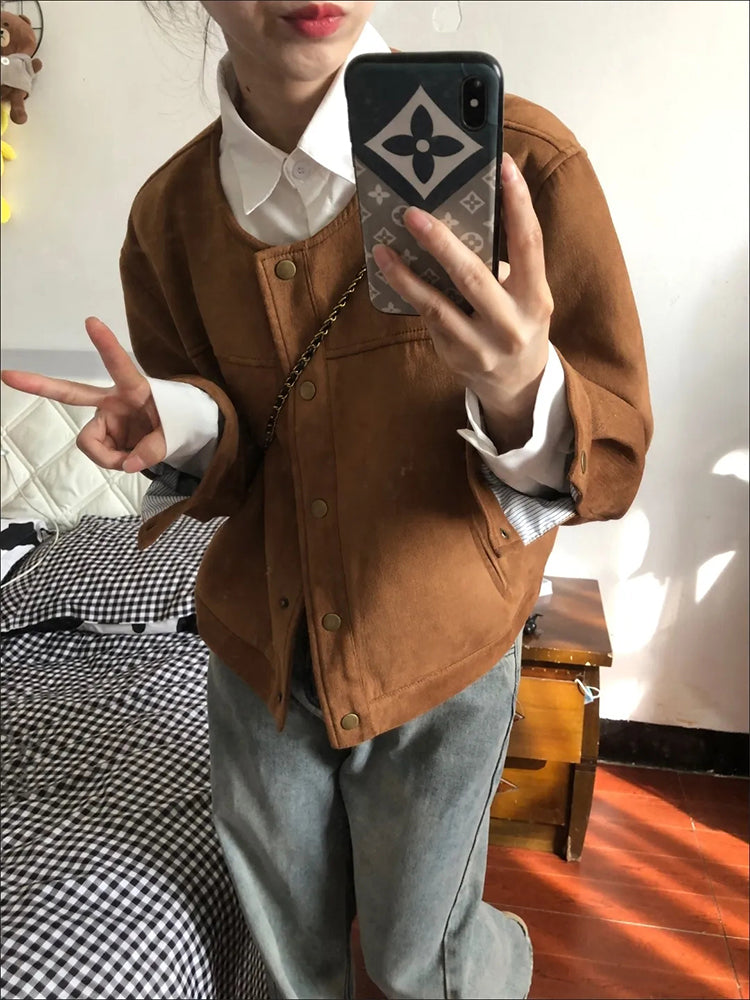 Perfetto per chi ama l'eleganza discreta, questo bomber in ecopelle scamosciata unisce stile e comfort. Con il suo design slim e il caratteristico collo Chaquetas ispirato alla moda coreana, offre un look raffinato e contemporaneo, ideale per accompagnarti nelle giornate autunnali. Una giacca versatile e senza tempo per esprimere al meglio il tuo stile unico. 🧥🌟